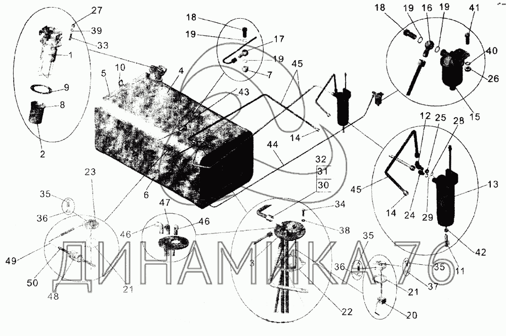 Перечень комплектующих от Бак топливный, установка топливопроводов на МАЗ-103 (2005)