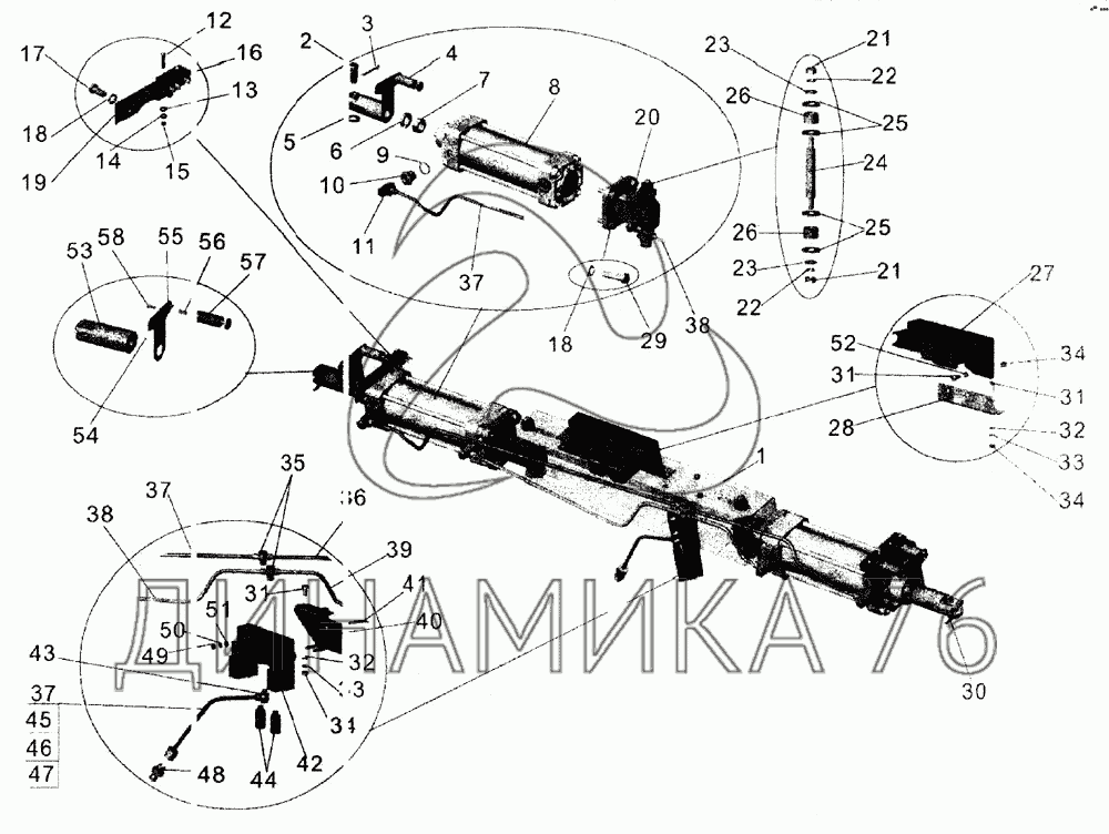 Перечень комплектующих от Привод дверей на МАЗ-103 (2005)
