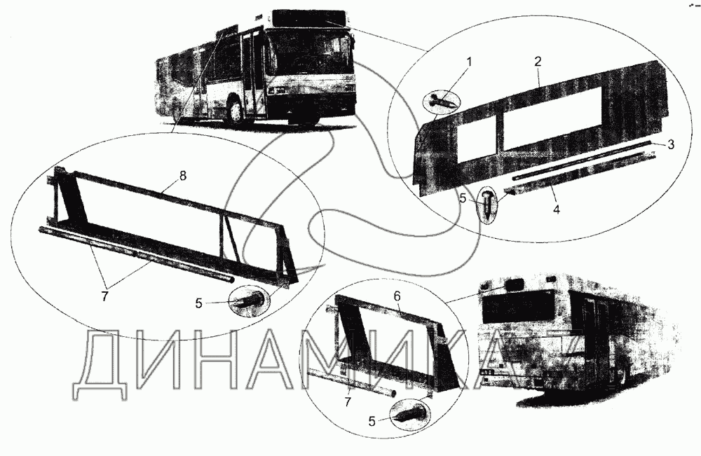 Перечень комплектующих от Установка осветителей маршрутных указателей на МАЗ-103 (2005)