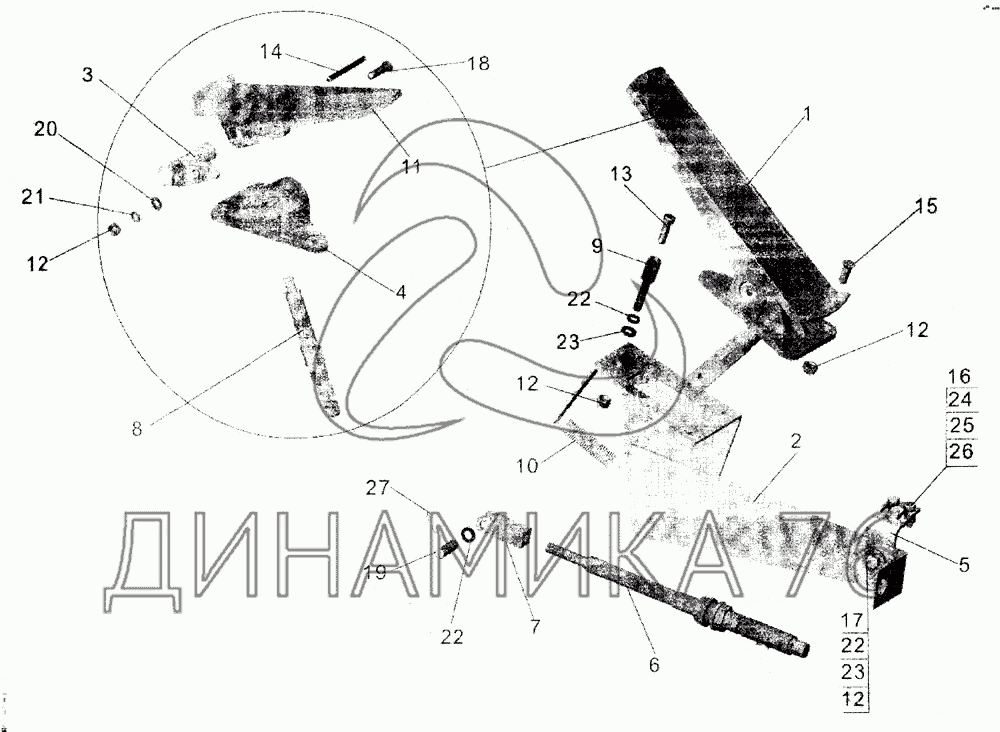Перечень комплектующих от Установка педали привода управления двигателем на МАЗ-103 (2005)