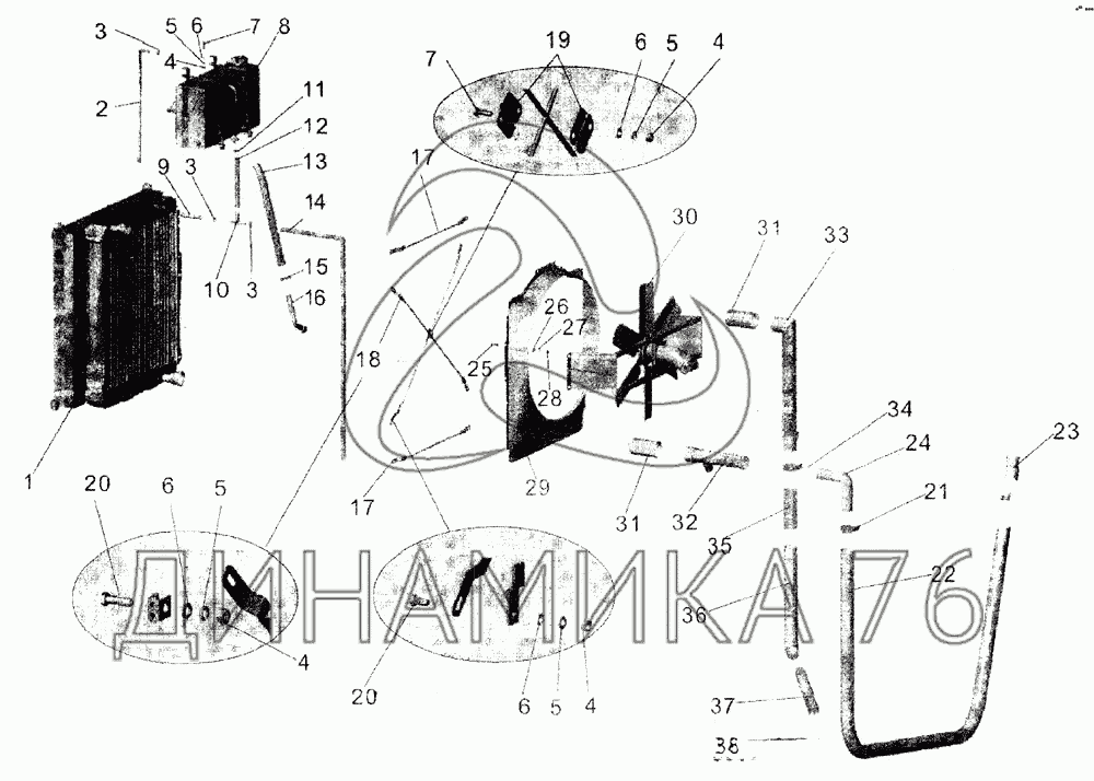 Перечень комплектующих от Установка системы охлаждения на МАЗ-103 (2005)