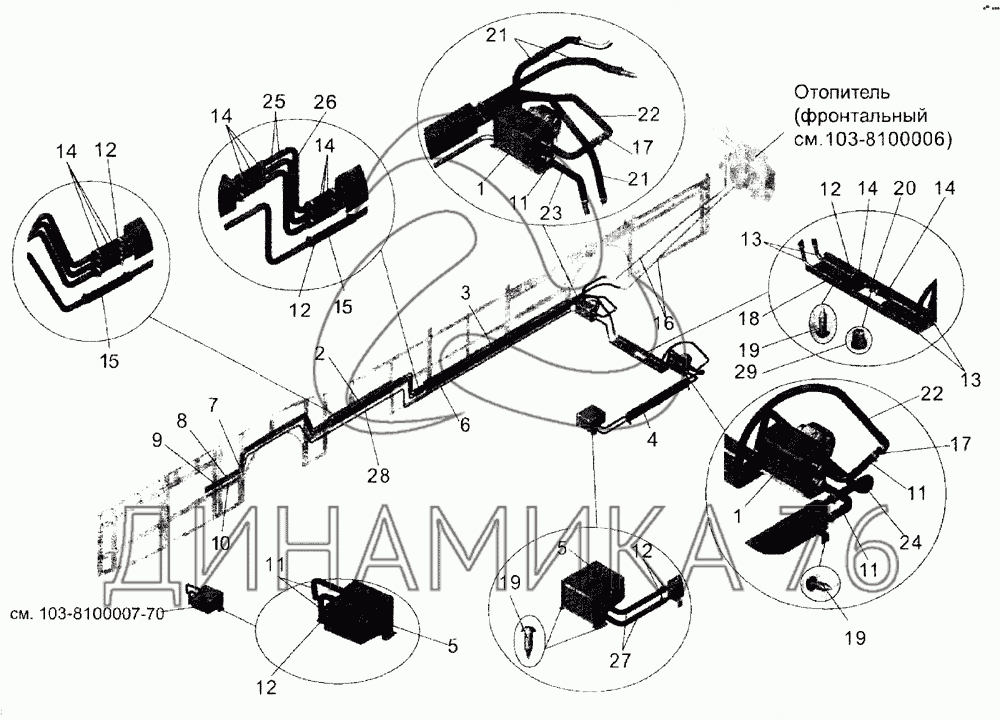 Схемы запчастей предназначены для справочных целей! Мы продаем не все запчасти от Установка системы топления в салоне на МАЗ-103 (2005), представленные в этом списке.