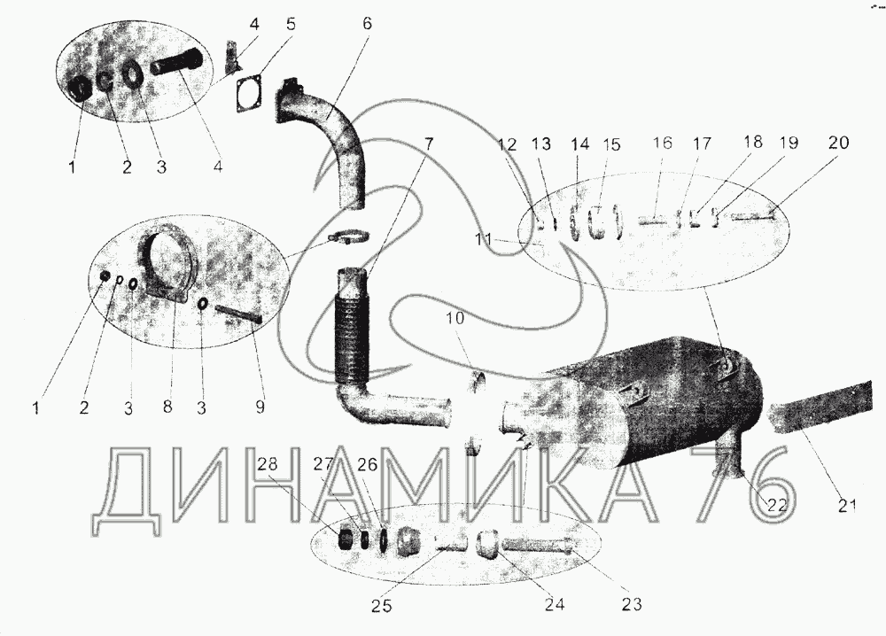 Перечень комплектующих от Установка системы выпуска отработавших газов на МАЗ-103 (2005)