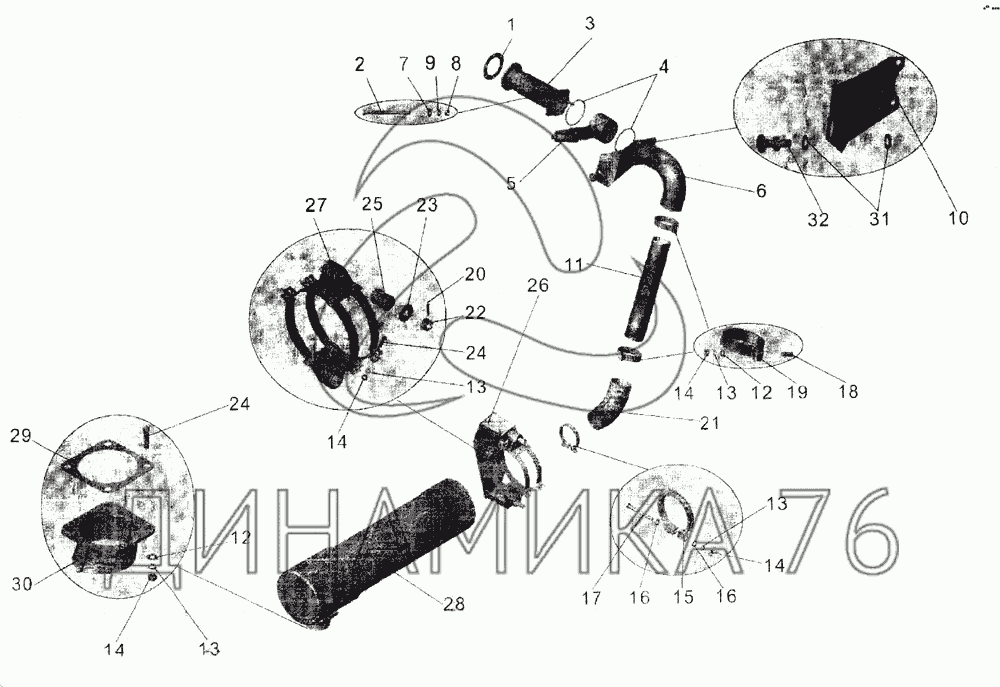 Перечень комплектующих от Установка системы выпуска отработавших газов на МАЗ-103 (2005)
