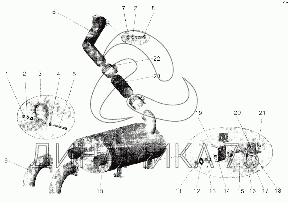 Перечень комплектующих от Установка системы выпуска отработавших газов на МАЗ-103 (2005)