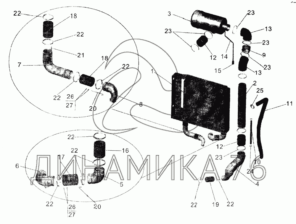 Перечень комплектующих от Установка воздухоочистителя и охладителя наддува на МАЗ-103 (2005)