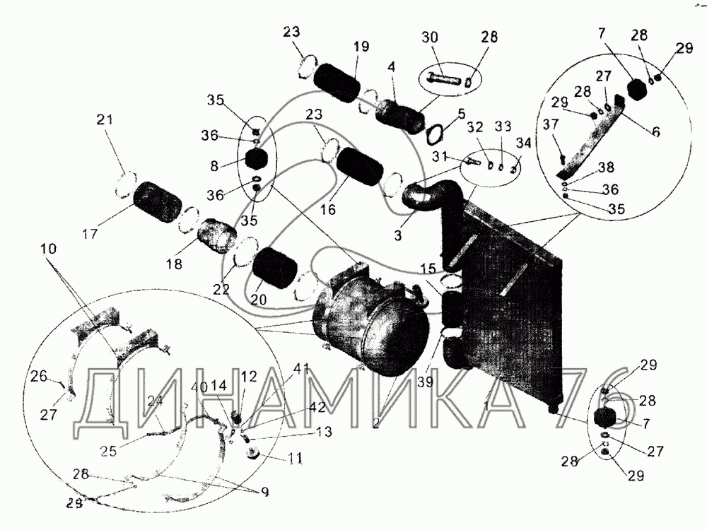 Перечень комплектующих от Установка воздухоочистителя и охладителя наддува на МАЗ-103 (2005)