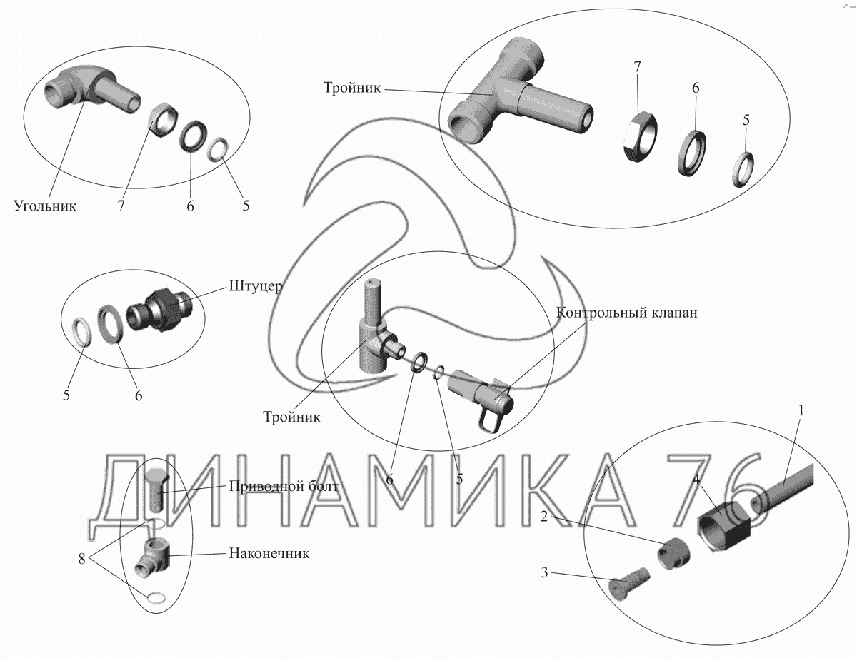 Перечень комплектующих от Соединения пневматические на МАЗ-103 (2011)