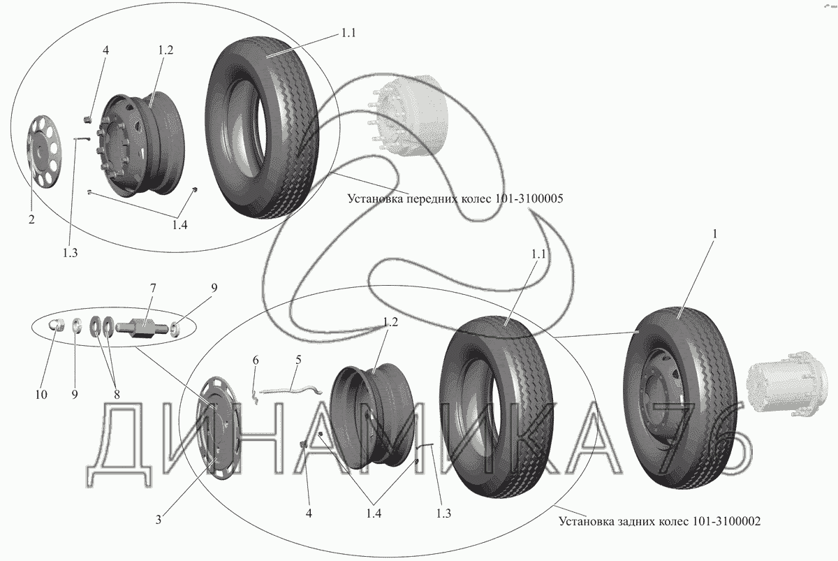 Установка колес 101-3100000 — МАЗ-103 (2011):
