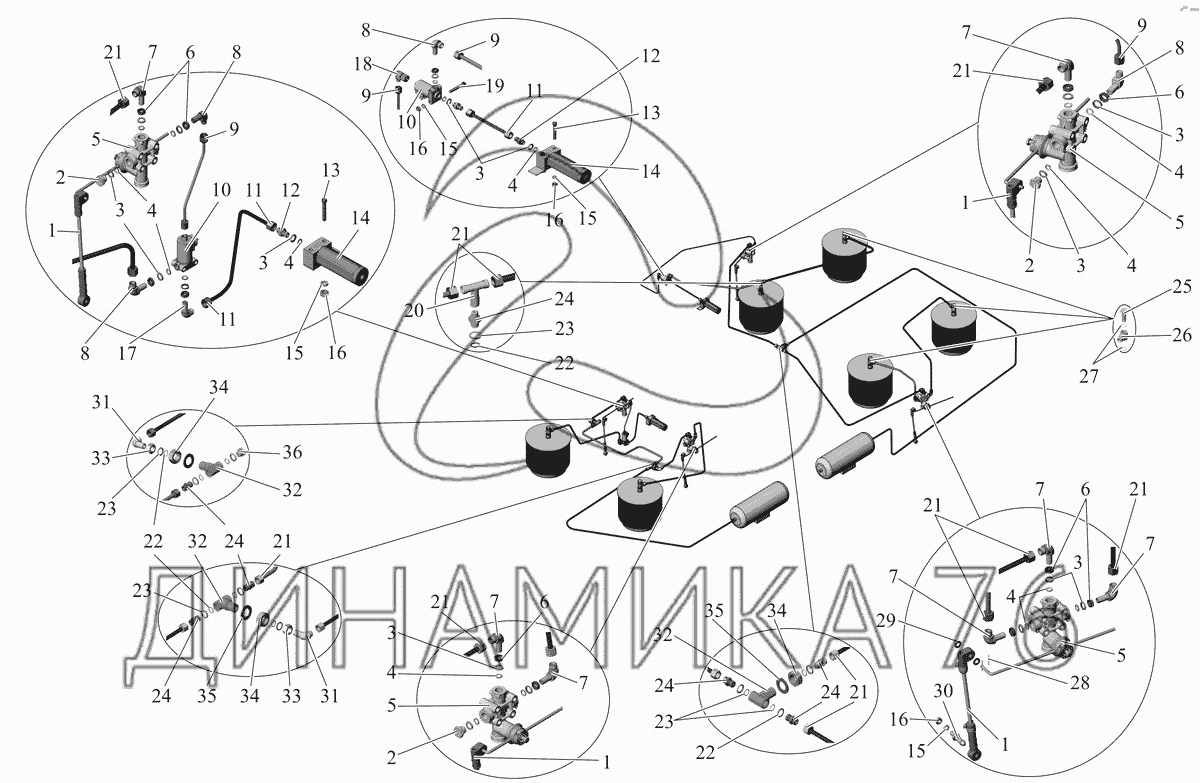 Перечень комплектующих от Установка трубопроводов пневмоподвески 103-2900018 на МАЗ-103 (2011)