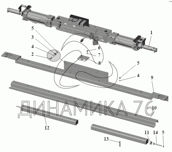 Перечень комплектующих от Механизм открывания дверей 101-6108010 на МАЗ-104 (2011)