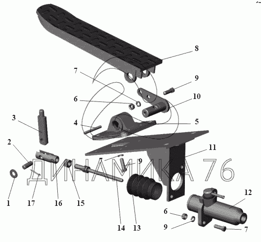 Перечень комплектующих от Педаль управления сцеплением 104-1602004 на МАЗ-104 (2011)