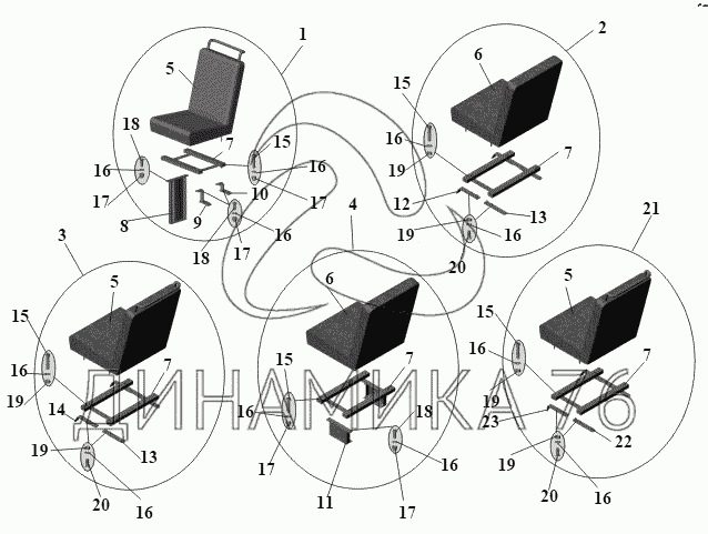 Перечень комплектующих от Сиденья одноместные на МАЗ-104 (2011)