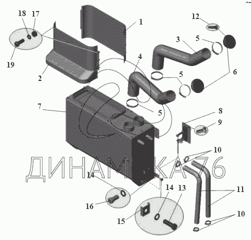 Перечень комплектующих от Установка фронтального отопителя 103-8100006 на МАЗ-104 (2011)