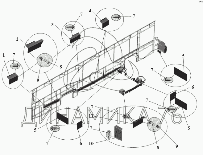 Перечень комплектующих от Установка кожухов 104-8101550 на МАЗ-104 (2011)