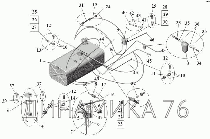 Перечень комплектующих от Установка топливопроводов 104-1100003-16 на МАЗ-104 (2011)