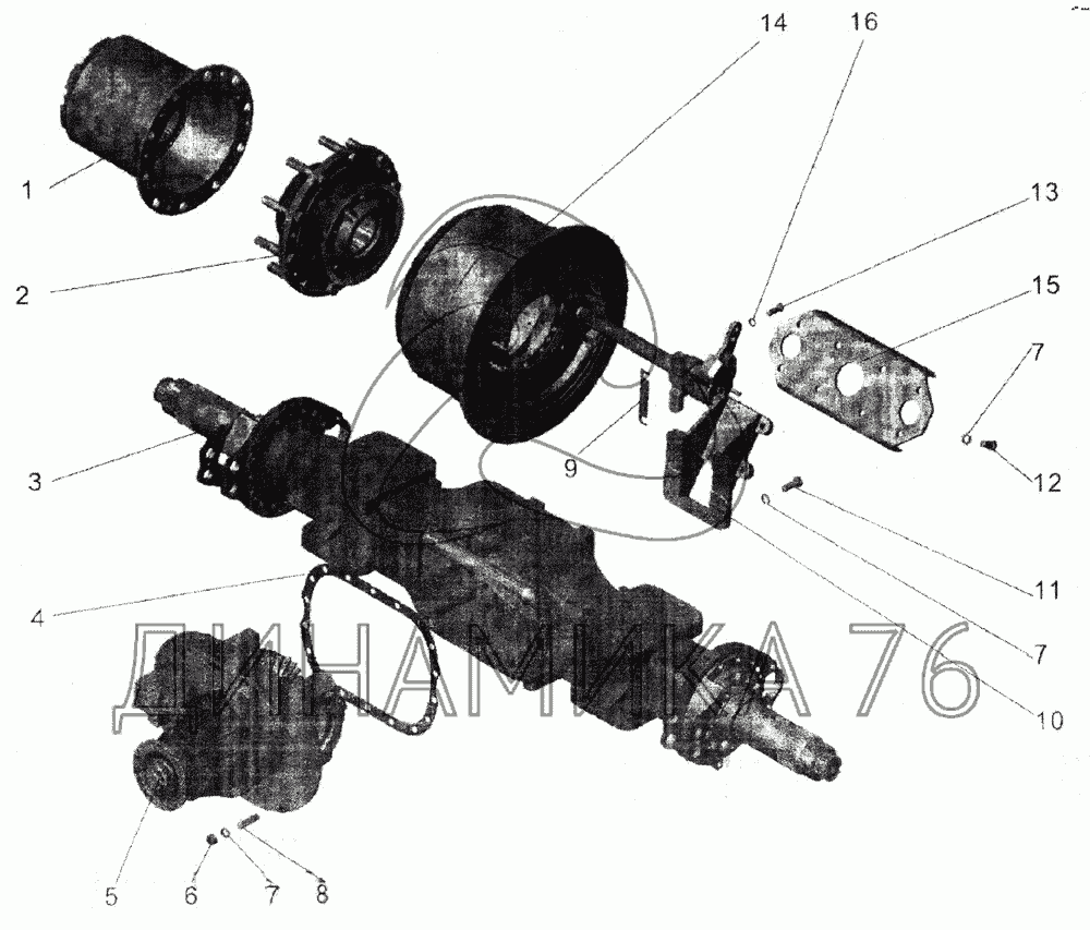 Перечень комплектующих от Мост задний МАЗ-104 на МАЗ-105