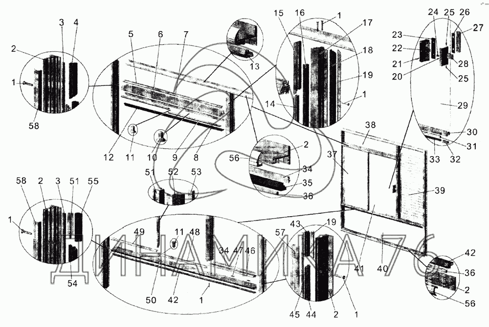Схемы запчастей предназначены для справочных целей! Мы продаем не все запчасти от Окно водителя на МАЗ-105, представленные в этом списке.