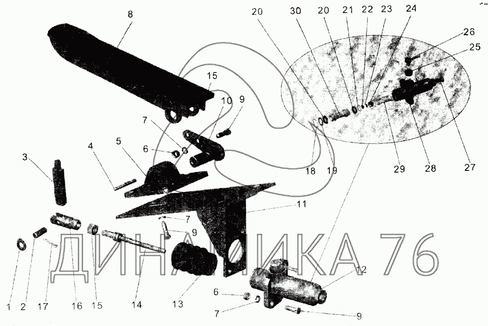Перечень комплектующих от Педаль управления сцеплением на МАЗ-105