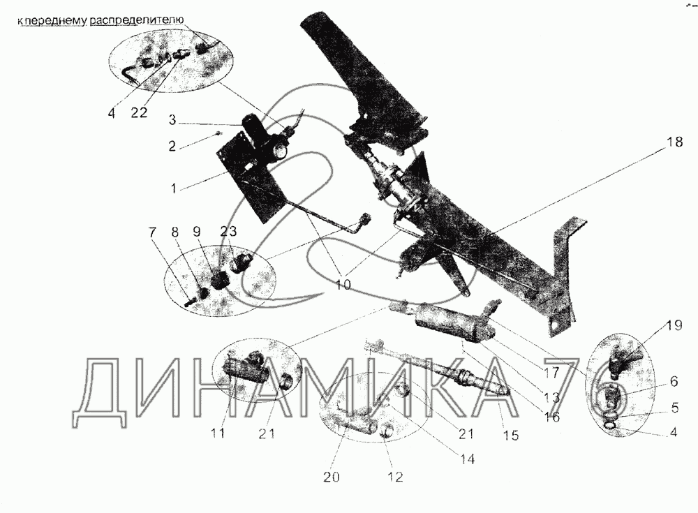 Перечень комплектующих от Привод управления двигателем на МАЗ-105