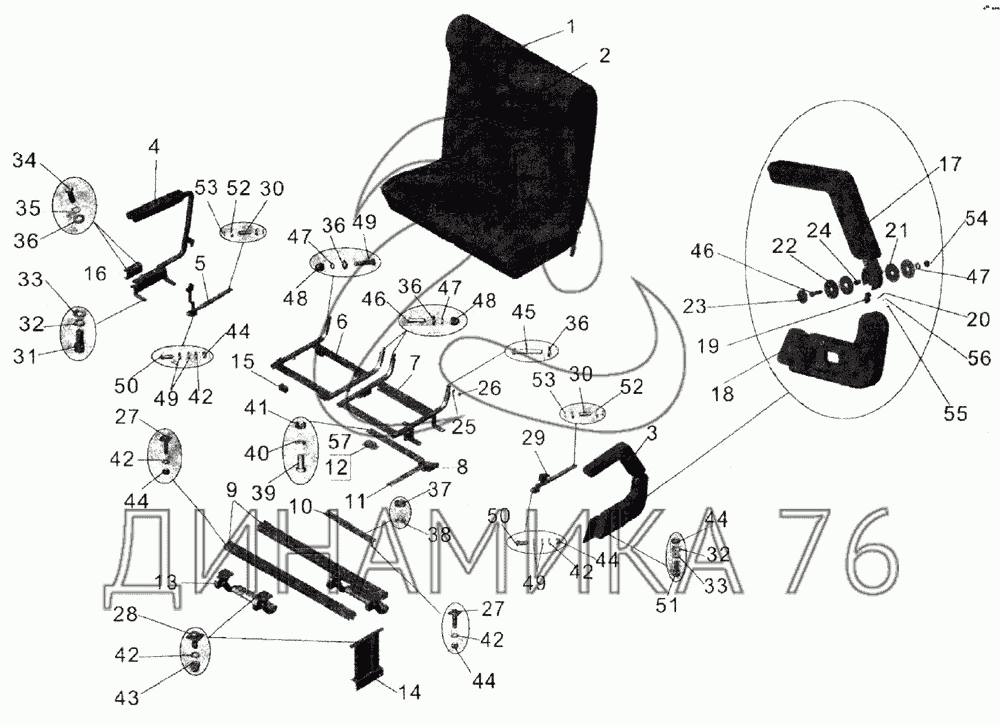 Схемы запчастей предназначены для справочных целей! Мы продаем не все запчасти от Сиденье двухместное на МАЗ-105, представленные в этом списке.
