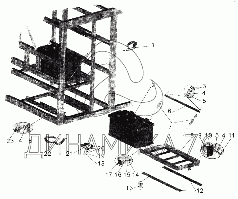 Перечень комплектующих от Установка АКБ на МАЗ-105