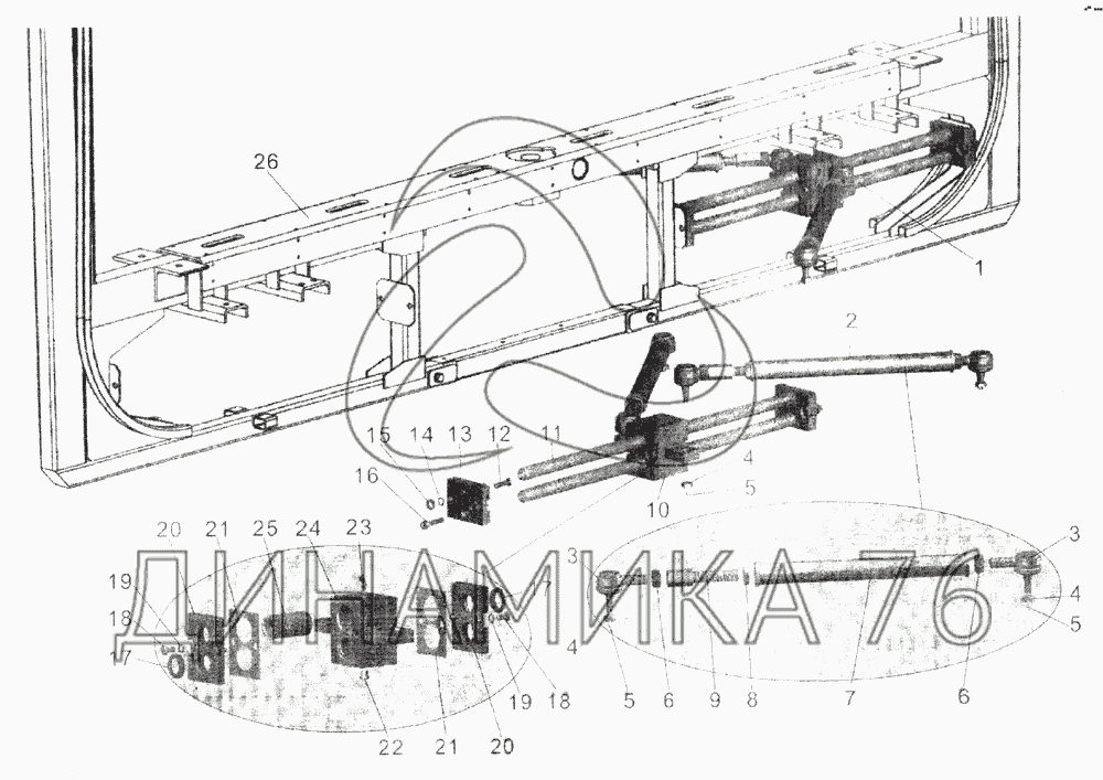 Перечень комплектующих от Установка двигателя (с 2003 года) на МАЗ-105