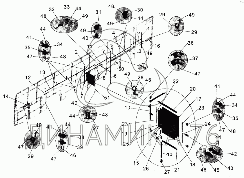 Схемы запчастей предназначены для справочных целей! Мы продаем не все запчасти от Установка поручней (слева) на МАЗ-105, представленные в этом списке.