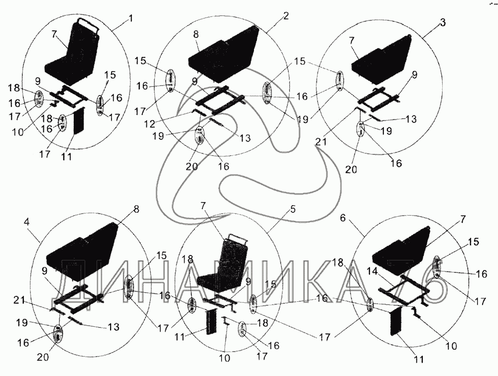Схемы запчастей предназначены для справочных целей! Мы продаем не все запчасти от Установка сидений (одноместные сиденья) на МАЗ-105, представленные в этом списке.