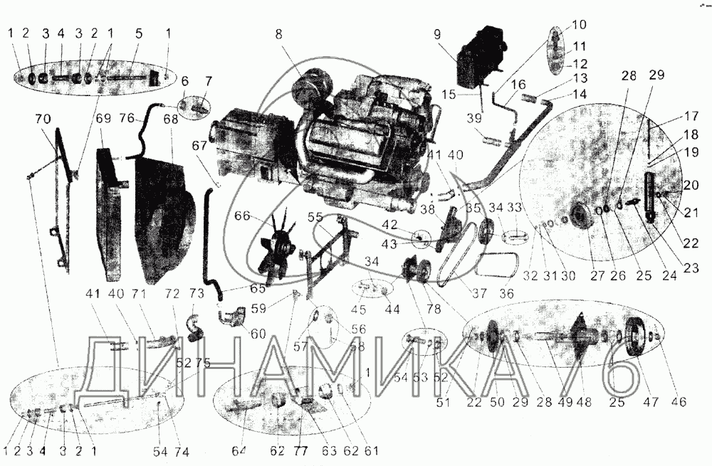 Перечень комплектующих от Установка системы охлаждения на МАЗ-105