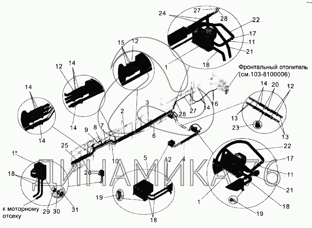 Схемы запчастей предназначены для справочных целей! Мы продаем не все запчасти от Установка системы топления в салоне на МАЗ-105, представленные в этом списке.