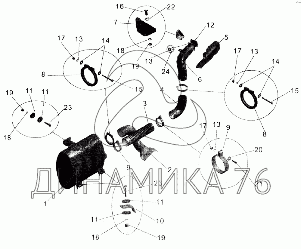 Перечень комплектующих от Установка системы выпуска отработавших газов на МАЗ-105
