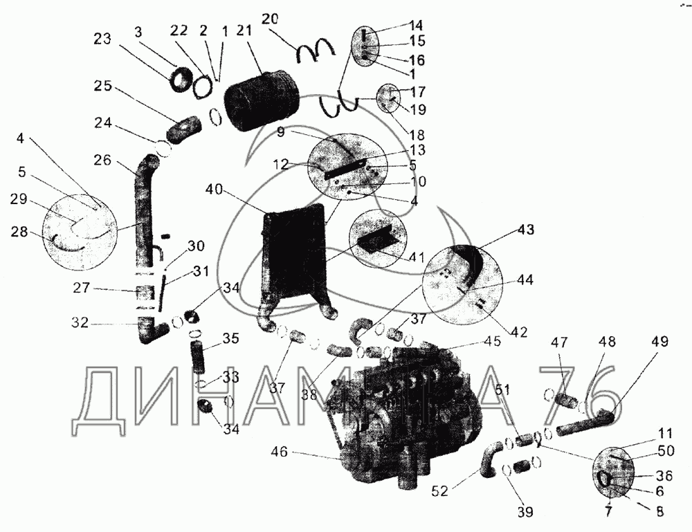 Перечень комплектующих от Установка воздухоочистителя и охладителя наддува на МАЗ-105