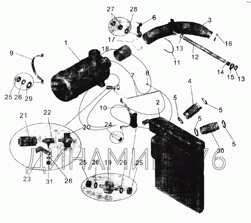 Перечень комплектующих от Установка воздухоочистителя и охладителя наддува на МАЗ-105