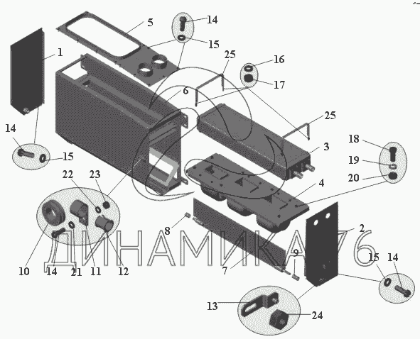 Перечень комплектующих от Фронтальный отопитель (до 2007г.) на МАЗ-105 (2011)