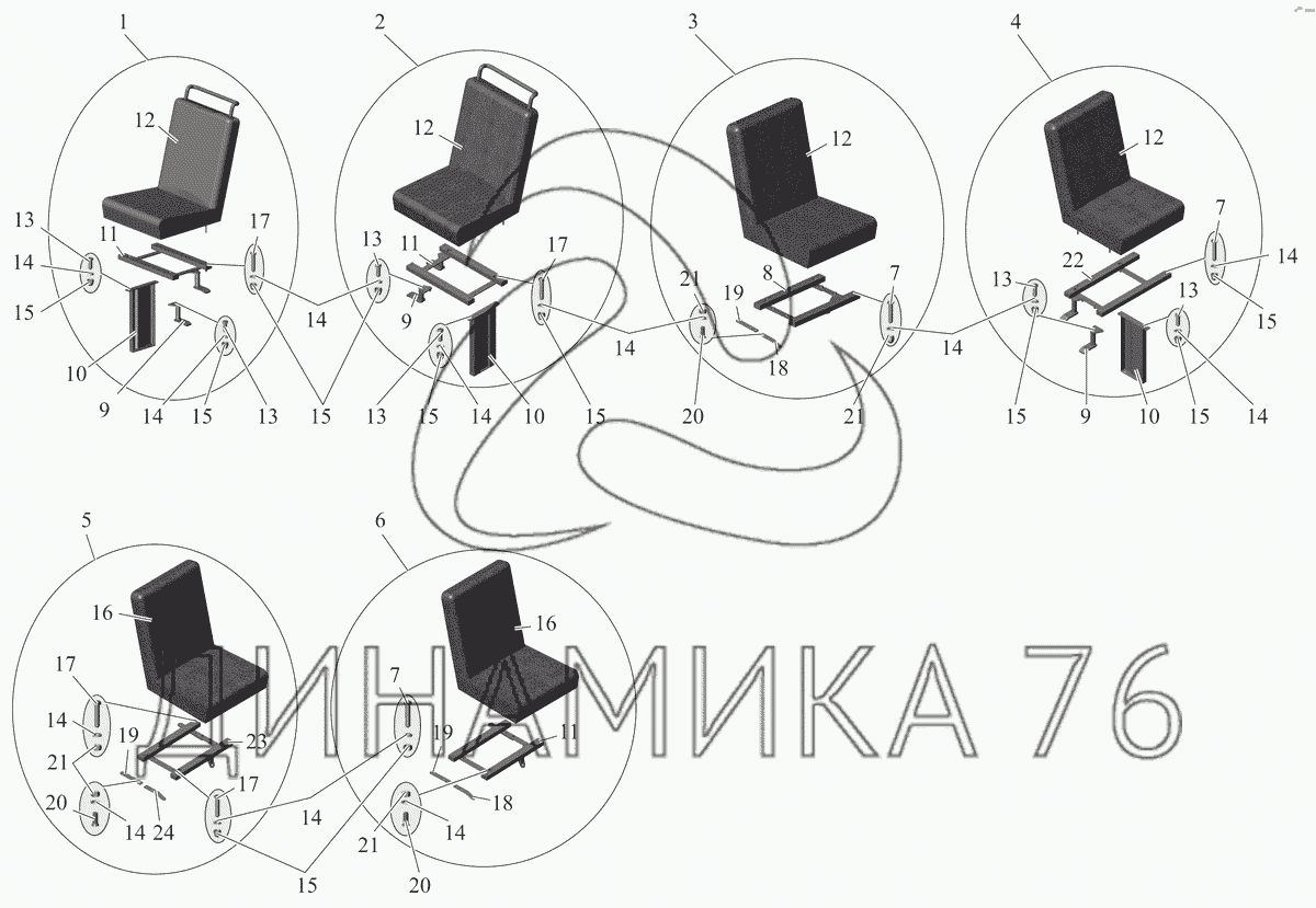 Перечень комплектующих от Сиденья одноместные на МАЗ-105 (2011)
