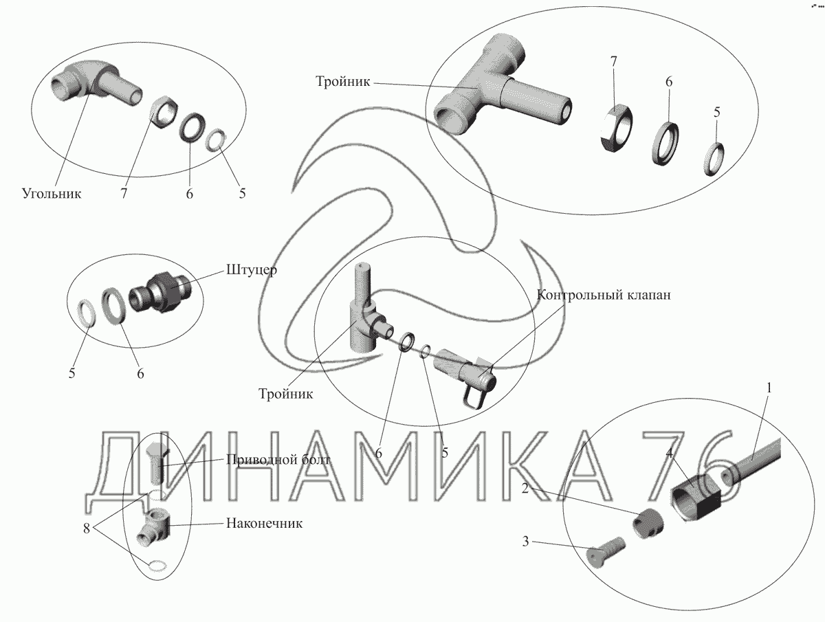 Перечень комплектующих от Соединения пневматические на МАЗ-105 (2011)