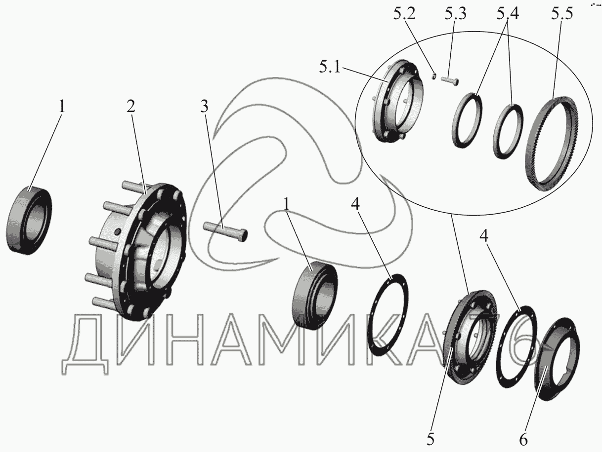 Перечень комплектующих от Ступица 152-3104006 на МАЗ-105 (2011)