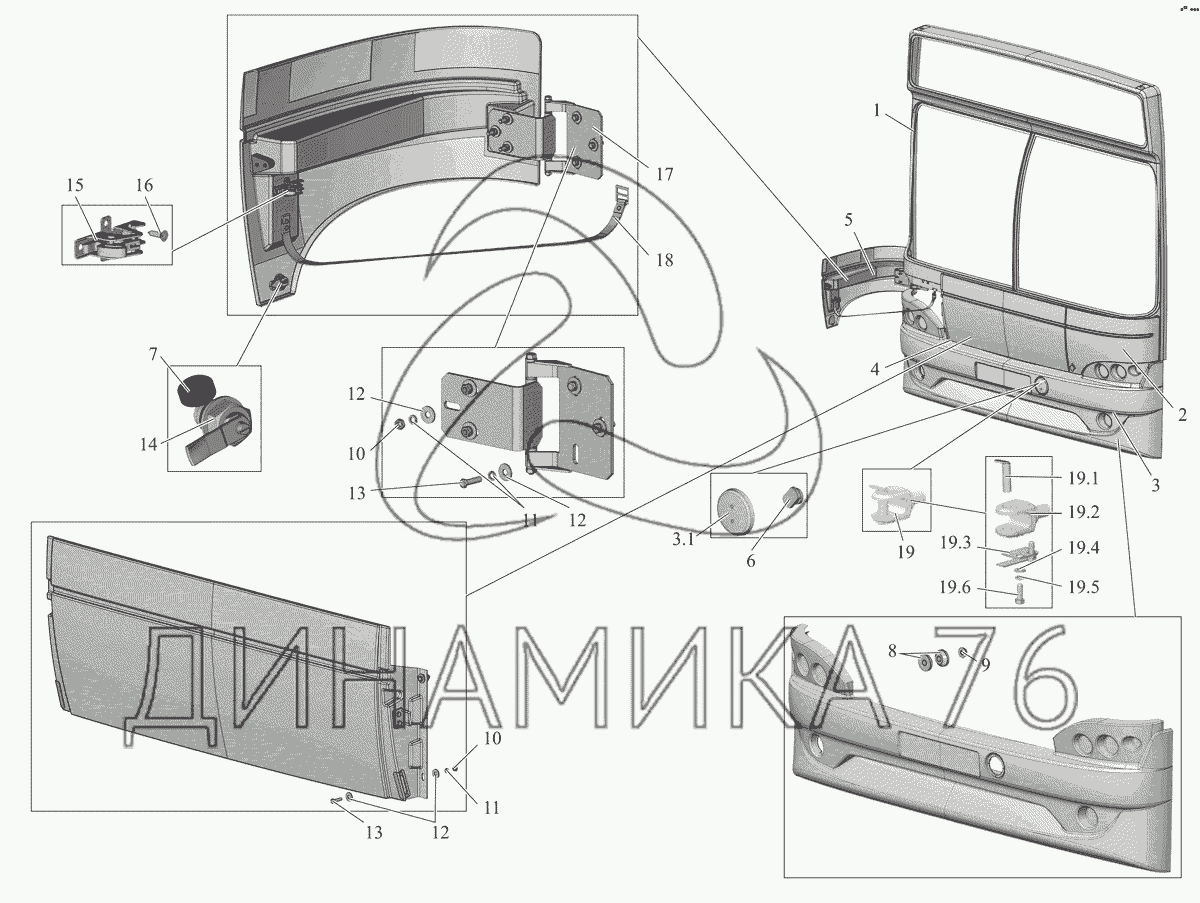 Схемы запчастей предназначены для справочных целей! Мы продаем не все запчасти от Установка облицовки передка 105460-5300020 на МАЗ-105 (2011), представленные в этом списке.