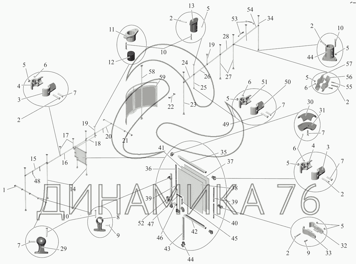 Перечень комплектующих от Установка поручней (слева) на МАЗ-105 (2011)