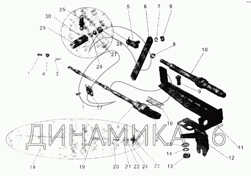 Перечень комплектующих от Привод управления двигателем на МАЗ-107