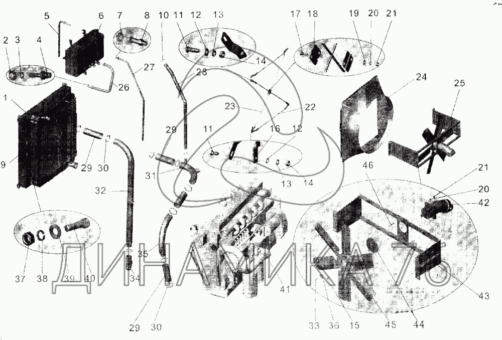 Перечень комплектующих от Установка системы охлаждения на МАЗ-107