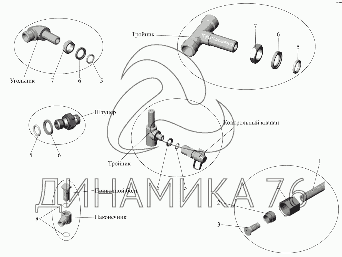 Перечень комплектующих от Соединительная арматура пластиковых трубопроводов на МАЗ-107 (2011)