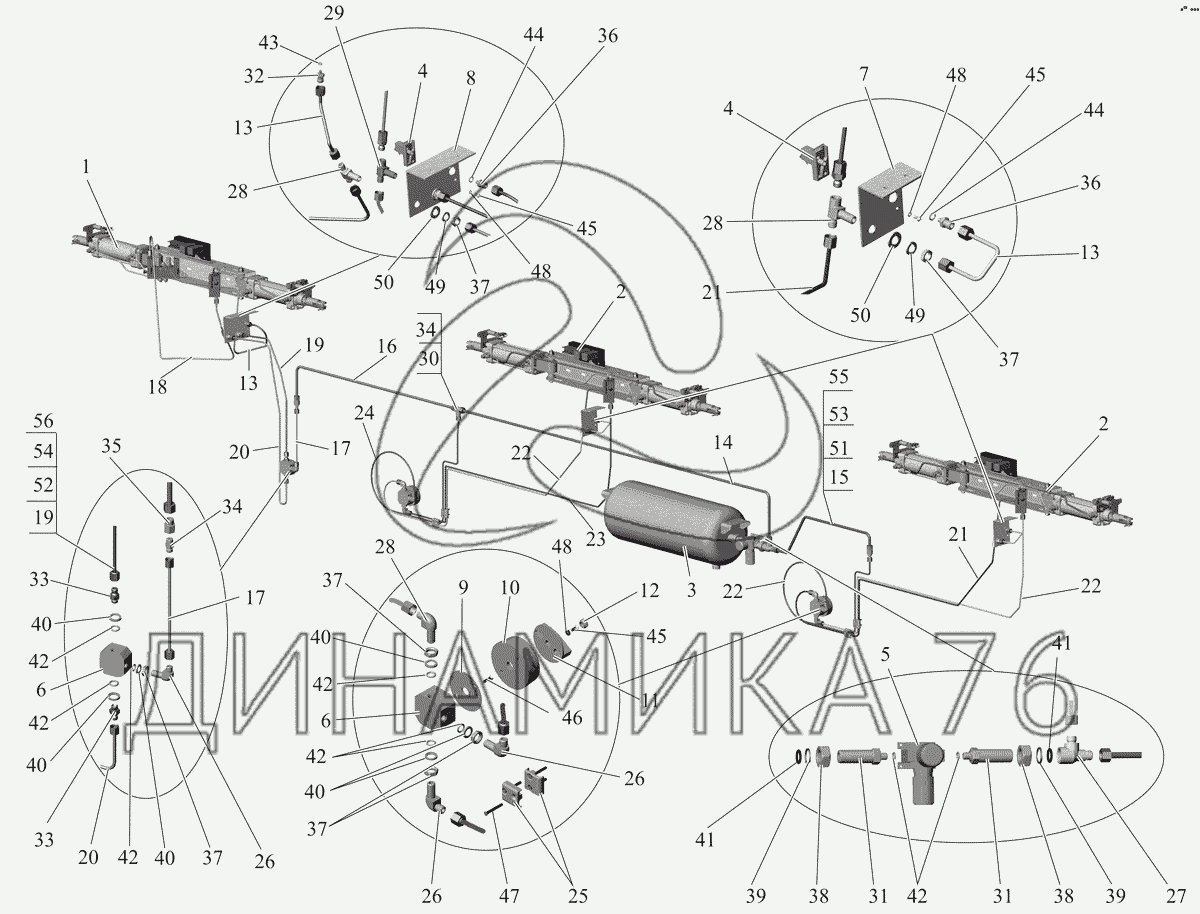 Перечень комплектующих от Установка дверей (пневмоаппаратура) 101-6100003 на МАЗ-107 (2011)