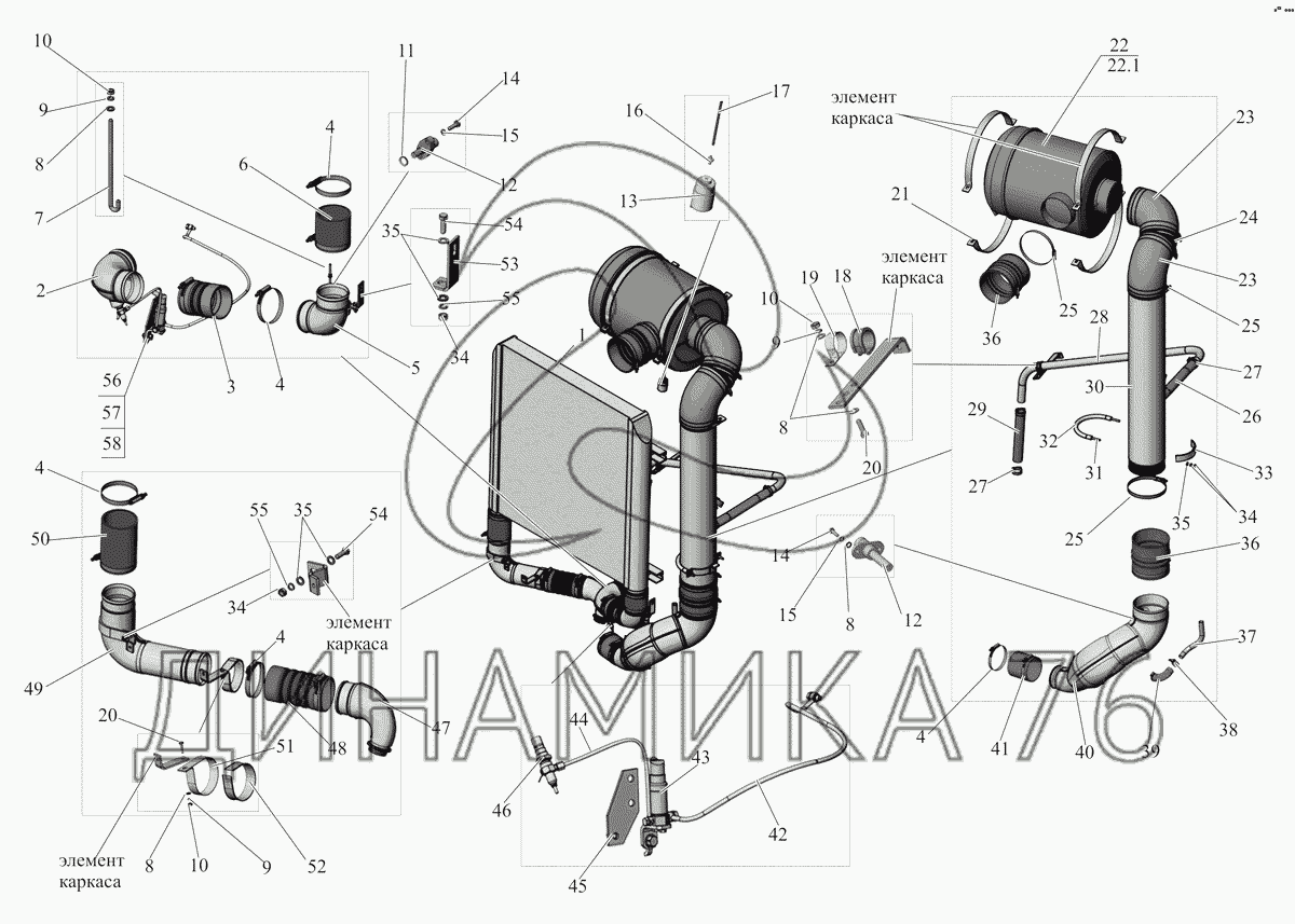 Перечень комплектующих от Установка воздухоочистителя и охладителя наддува на МАЗ-107 (2011)