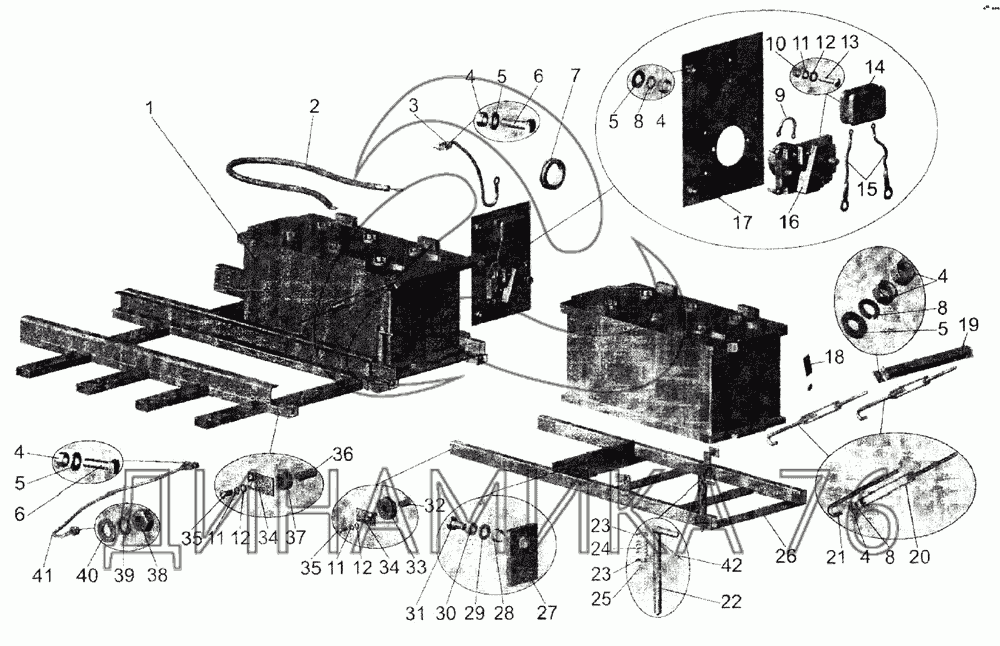 Схемы запчастей предназначены для справочных целей! Мы продаем не все запчасти от Установка АКБ (после 2003 года) на МАЗ-152, представленные в этом списке.