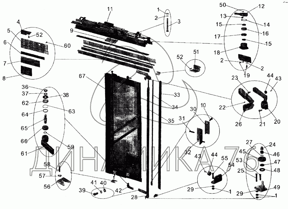 Схемы запчастей предназначены для справочных целей! Мы продаем не все запчасти от Установка дверей на МАЗ-152, представленные в этом списке.