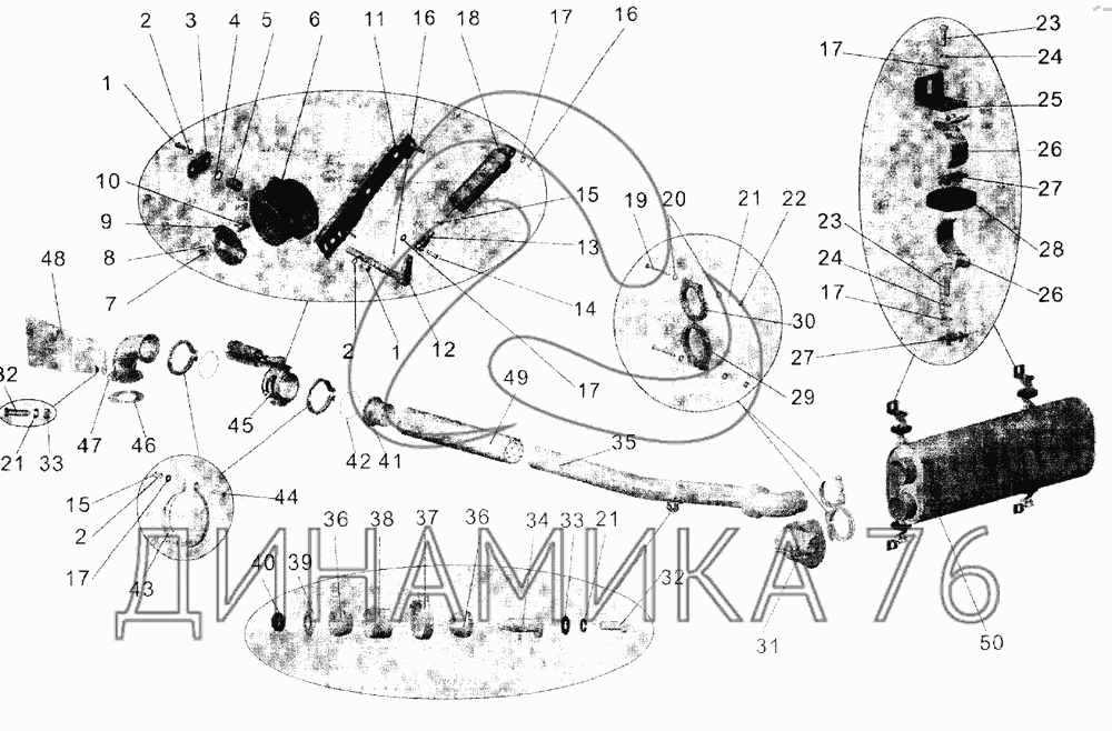 Перечень комплектующих от Установка системы выпуска отработавших газов на МАЗ-152