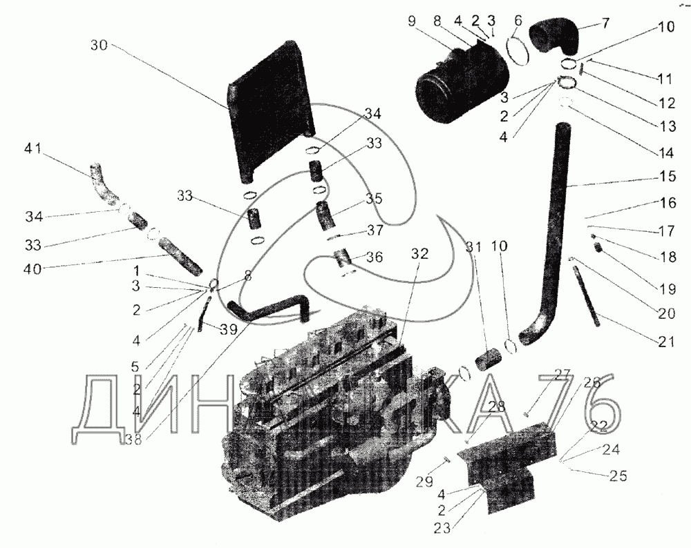 Перечень комплектующих от Установка воздухоочистителя и охладителя наддува на МАЗ-152
