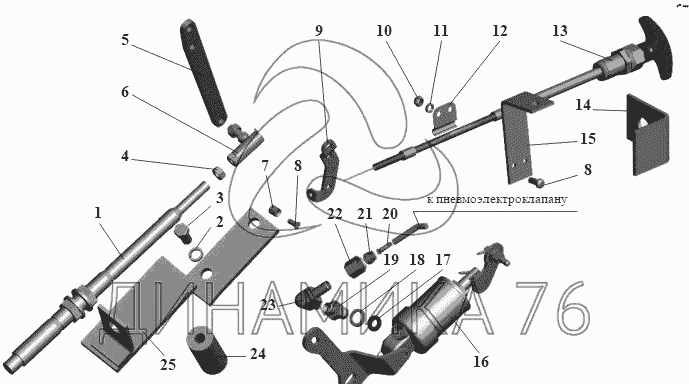 Перечень комплектующих от Привод управления двигателем 104-1108002-60 на МАЗ-152 (2011)